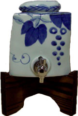 有田焼 焼酎サーバー 古染ぶどう(角型)(焼杉台付・カップ付き)2.3L