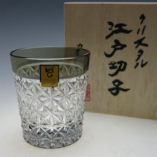 カガミクリスタル 江戸切子 懐石杯 麻の葉 紋(t590-55-blk)