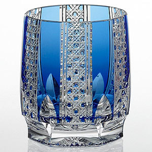 カガミクリスタル 江戸切子 ロックグラス 八角籠目 紋(青)(T704-2629-CCB)